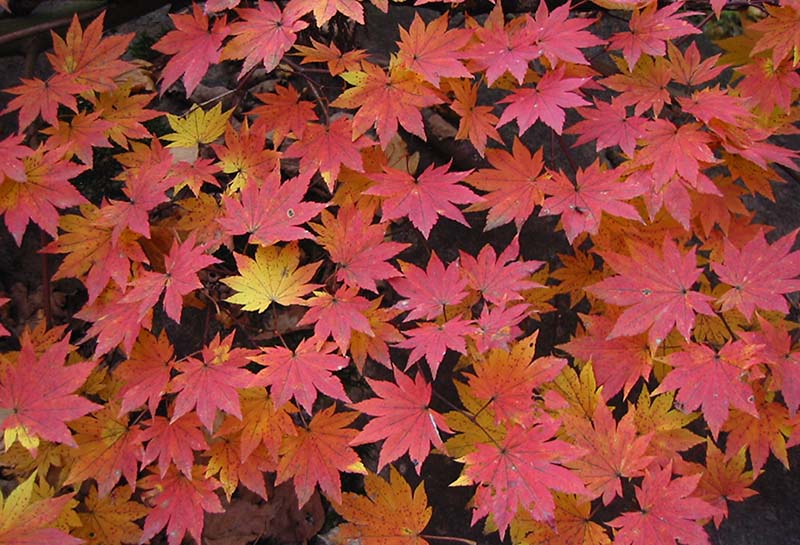 秋山郷(あきやまごう)は、新潟県中魚沼郡津南町と長野県下水内郡栄村とにまたがる中津川沿いの地域の名称で、日本の秘境100選に選定されています。地に這った幹は豪雪によるものでしょうか、普段は見上げる高さの葉が足元に拡がり、紅葉を鑑賞することができました。(2018/01)